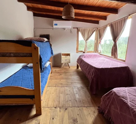 Primero contarte que la casa cuenta con dos habitaciones climatizadas, una de cama doble y otra cuatro camas simples.